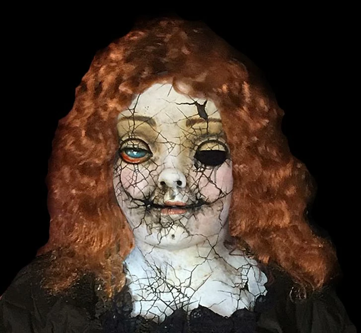 A little girl who’s worst nightmares come to life when this grotesque cracked porcelain doll finds a new home. Its shattered face and damaged hands will make all around scream in fear. This evil presence will make a great new addition to your haunt.
