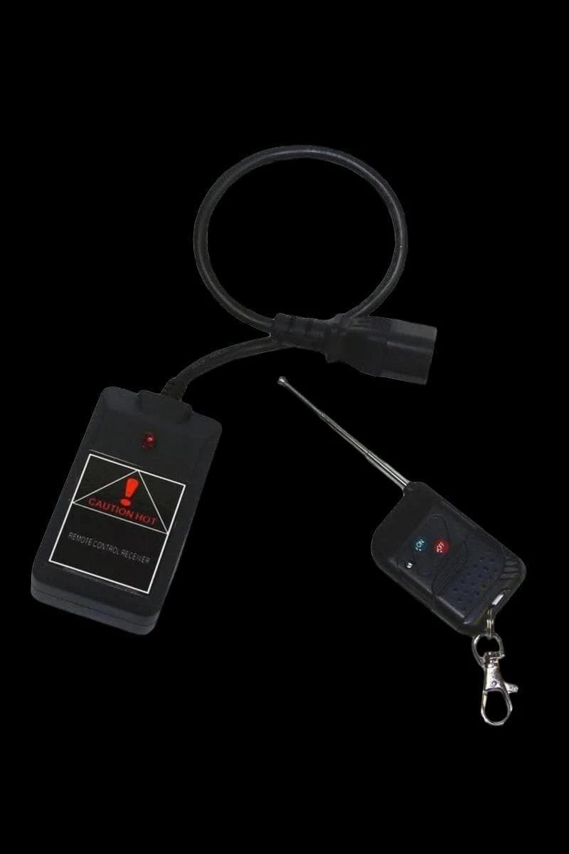 This fantasticly useful accessory will activate any of the above machines by cordless remote from up to 30 ft away! Just press the button! Three prong male connection and handheld switch. Works with any of our Fog Machines.