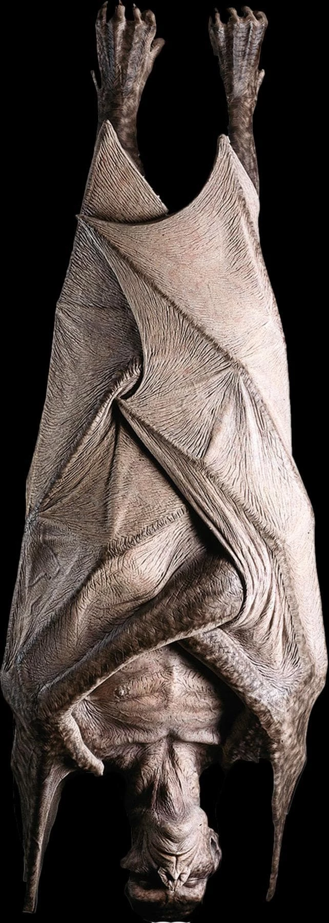 Life-sized, foam filled latex. Metal armature that sticks out of feet for hanging. A very impressive piece. Intricately sculpted and painted. Approx. 5′ 4′.