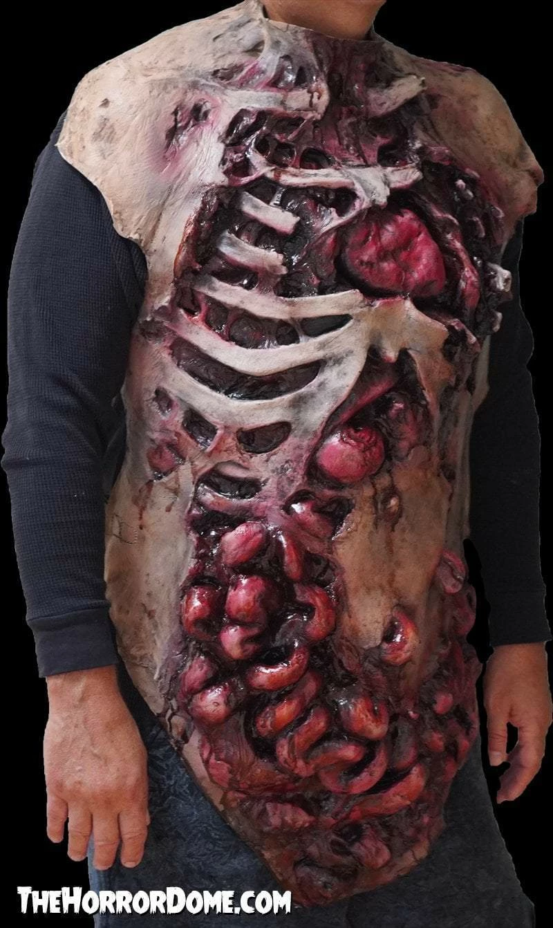 Whether you’re going as a zombie, werewolf, or victim of a gory accident, you’ll find this chest plate and shirt combo looks shockingly realistic. Add a new character to your professional haunted house attraction, turn heads at the costume party, or freak out the local trick or treaters with this Hollywood-quality accessory.