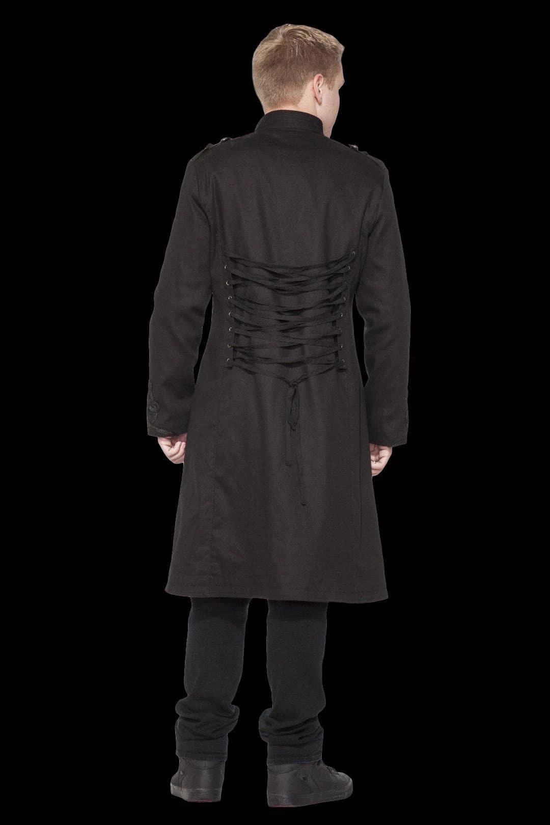 Our stunning jacket is made from a luxurious brocade fabric. Military style metal button detail on the front. The back of the coat has a criss-cross lace up style.