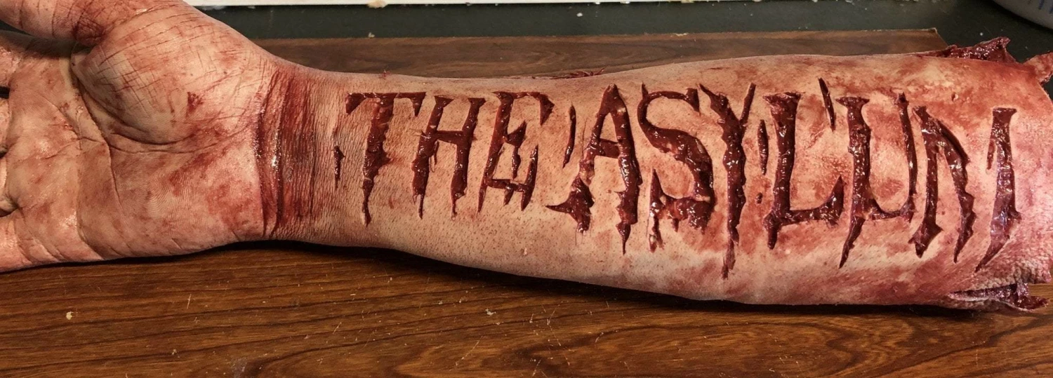 This silicone severed arm can be customized to have any lettering or logo carved into it. Please specify desired lettering or send logo as attachment in message at time of purchase. Price is for something comparable to arm in pic posted. Highly detailed and film ready, Hand solid silicone and the forearm is silicone skinned with a foam core.