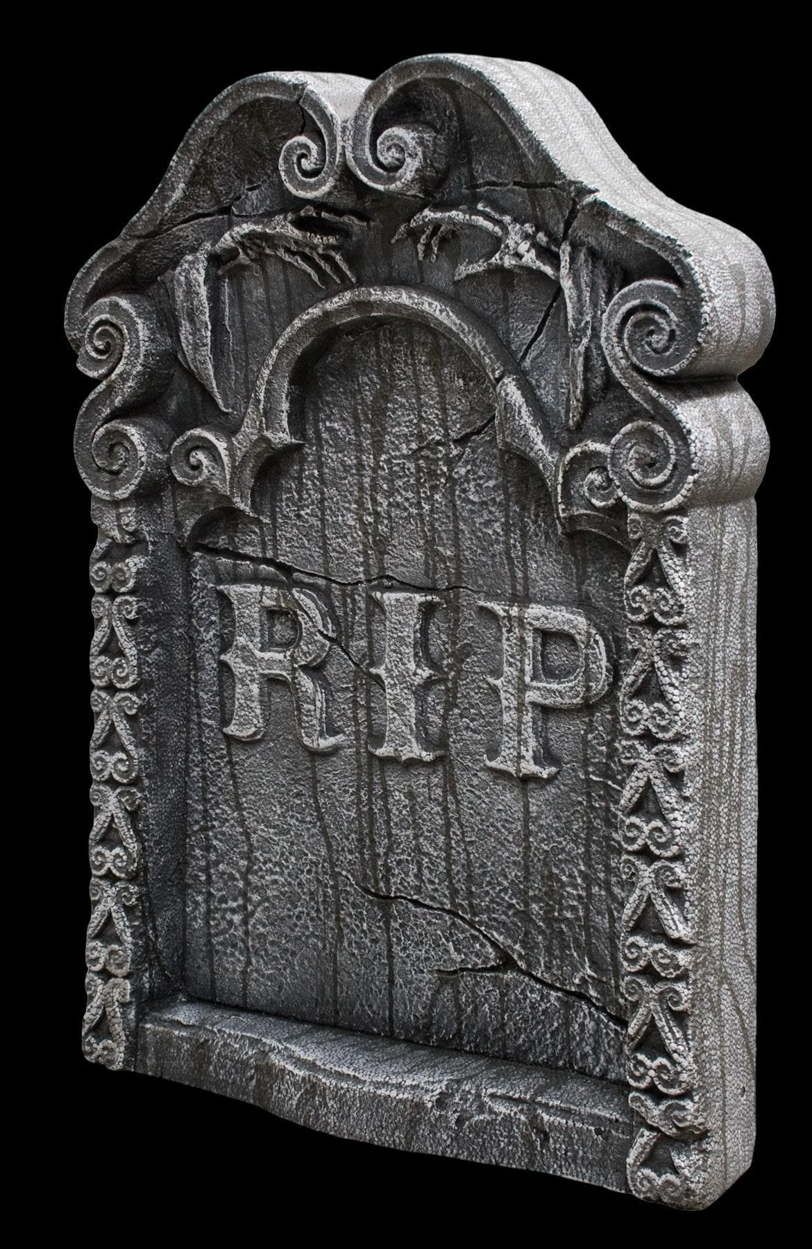 Looks like the real thing! Lightweight polystyrene tombstones have a realistic weathered-stone look with 2 plastic ground stakes. Perfect for any haunted house graveyard or tomb! 30in tall x 22in wide x 4in deep.