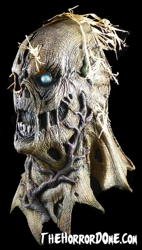 The Scarecrow mask from The Horror Dome is a shockingly realistic, hand detailed original creation. Torn, burlap-like skin covers pale gray bone structure, exposing jagged teeth and gaping holes. One piercing blue eye seems focused on nothing but his violent intentions.