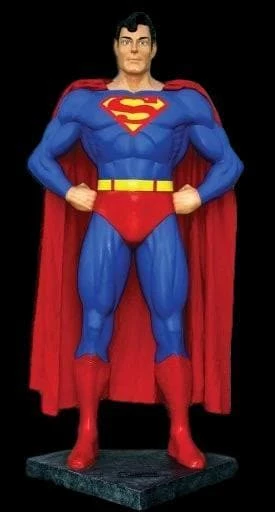 It’s a bird, it’s a plane! It’s the Man of Steel! This popular hero has been doing everything from rescuing the family cat from a tree branch too high, to foiling the dastardly plots of demented super-villains who seek revenge on society. An undeniable force for good, he soars over Metropolis and watches over its fine citizens with an eagle-eye. You better think twice before snatching that lady’s purse, that is, unless you’re packing some kryptonite. The Superman Movie Display Halloween prop is a stunning fiberglass creation that looks as if he leapt right off the silver screen. Try adding a superhero room to your haunted house and diversify the experience. Crafted by the experienced and inspired artists at The Horror Dome, this classic character will be a favorite of your guests, both old and young. It makes an amazing addition to your basement barroom, billiards room, or ice fortress of solitude.